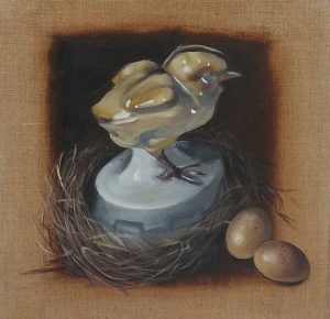 Study of Porcelain Chick with Quail Eggs 2024 | 32x32cm | Oil on linen on panel framed