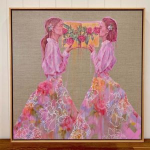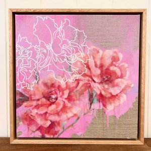Rosa's Secret (Under The Rose) | 82x82cm (framed) | Mixed media on raw Belgian linen